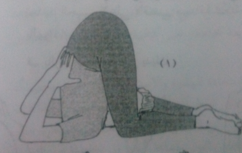 2 – ثم ارفع ساقيك لأعلى مرة أخرى مع ثنى الركبتين وضم باطنى القدمين بحيث تصنع مثلثا بساقيك .