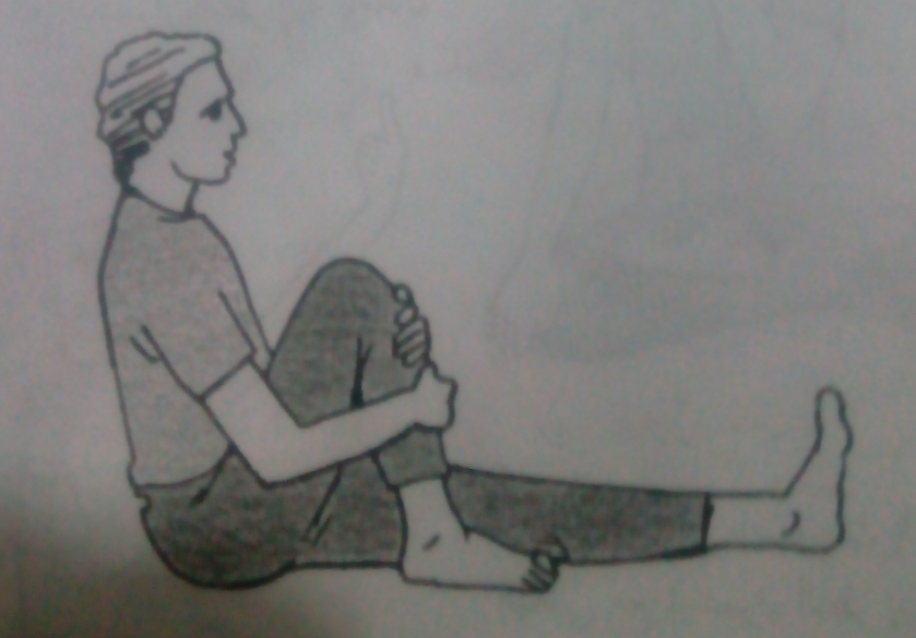 الكسور أو الشروخ العظيمة القديمة قد تسبب بعض الألم وصعوبة الحركة التقدم فى السن . والتمرين التالى يساعد فى مقاومة هذه المشكلة حيث ينشط الدورة الدموية ويليين العضلات مما يساعد على مقاومة الألم ومساعدة الالتئام . 1 – اجلس على الأرض مع ثنى الركبة اليسرى لأعلى وضم الساق للداخل باليدين وتمديد الساق الأخرى .