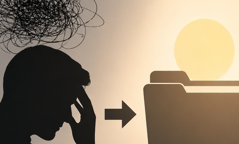 النقطة الأهم: عندما يظهر هذا الموضوع في ذهنك فجأة، وتبدأ دوامة التفكير… توقّف لحظة. وقل لنفسك: “هذا ملف… وليس الآن وقت التفكير فيه.”